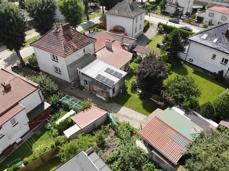 Dodatkowo w skład nieruchomości wchodzą drewniany budynek garażu/ magazynu znajdujący się za domem o powierzchni około 35 m2, oraz budynek użytkowy o powierzchni użytkowej 31,98 m2, w którym można prowadzić sklep, lokal usługowy, lub zaaranżować na małą kawalerkę pod wynajem (znajduje się w dobudowanej części budynku, za apteką)