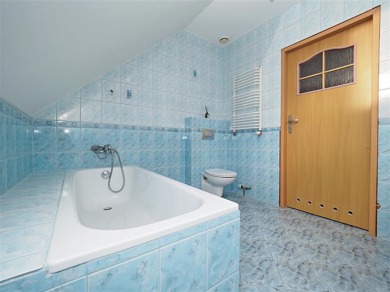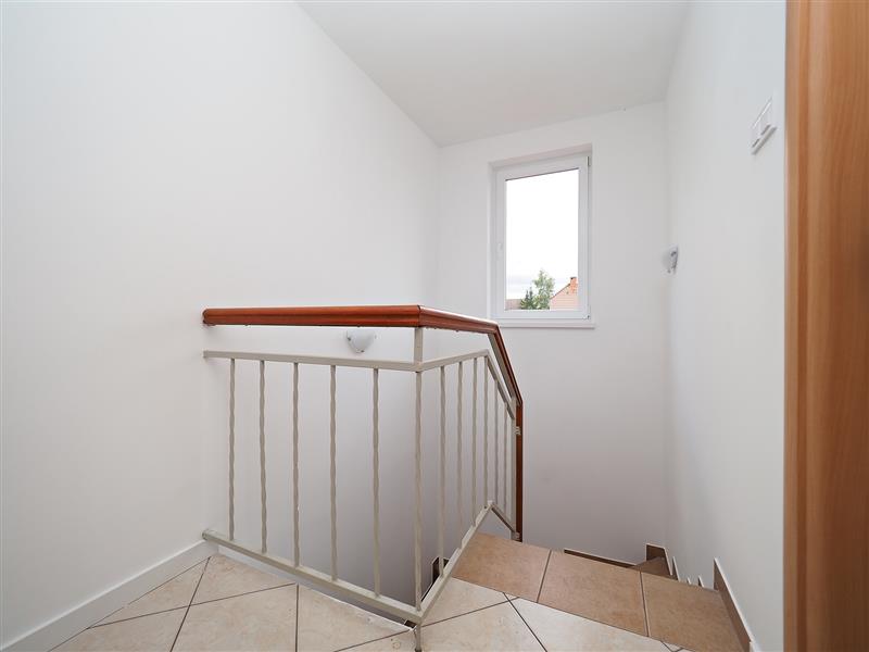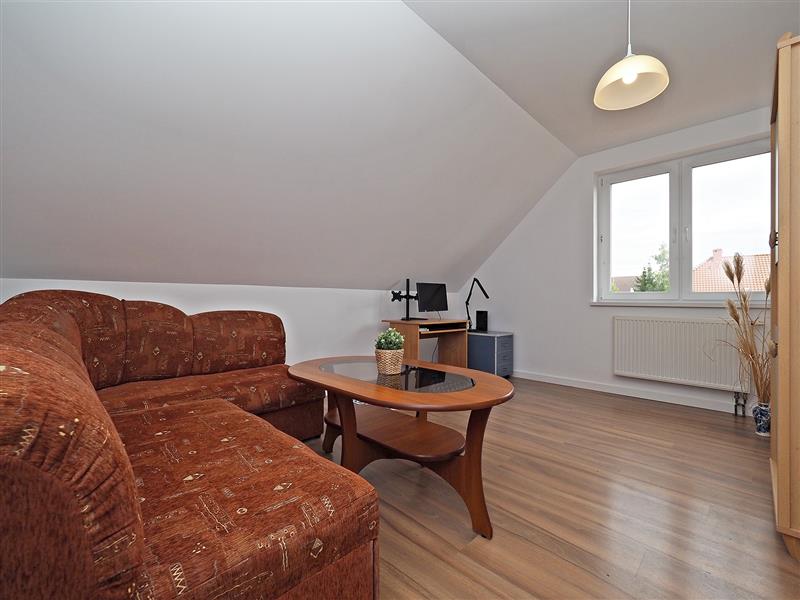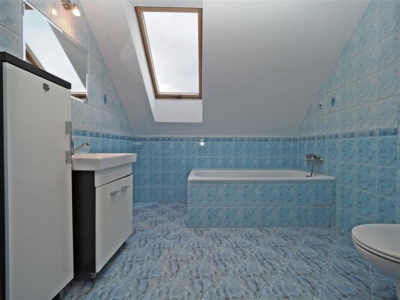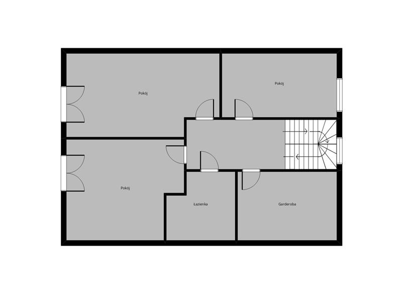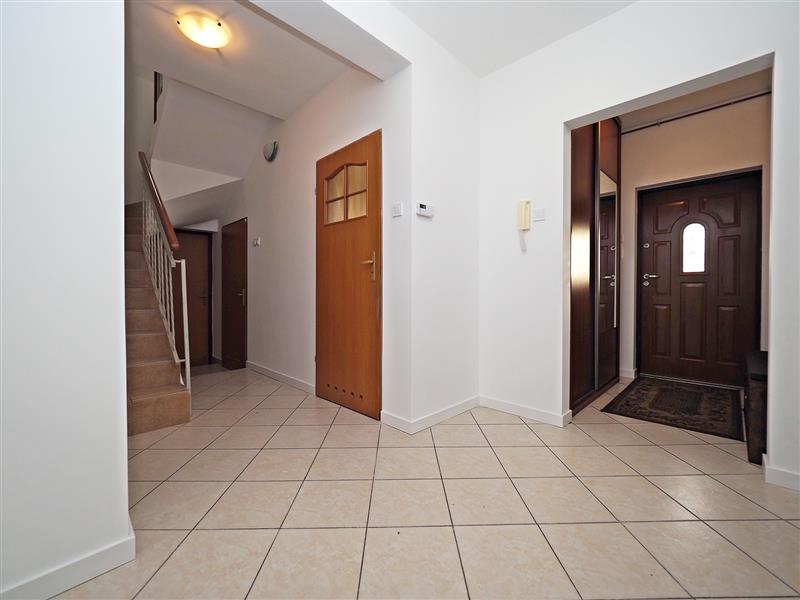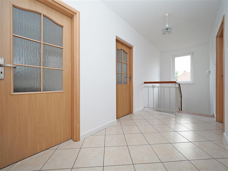 Na piętrze znajduje się przedpokój (ok. 6,73 m2), 3 sypialnie (ok. 13,24 m2, 10,09 m2, 9,75 m2), garderoba (ok. 3,7 m2) oraz łazienka z wanną (ok. 3,35 m2). Z 2 sypialni wyjście na wspólny balkon. W przedpokoju na piętrze znajduje się wejście na strych.