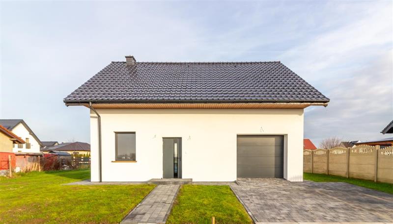 Nieruchomość wykonana według projektu domu „Monika 2”. Jego wygląd zewnętrzny uwydatnia cechy charakterystyczne dla stylu nowoczesnego, co jest idealnym rozwiązaniem dla osób ceniących najnowsze rozwiązania. Dom cechuje się prostą bryłą, co znacznie ułatwia późniejszą aranżację wnętrza.