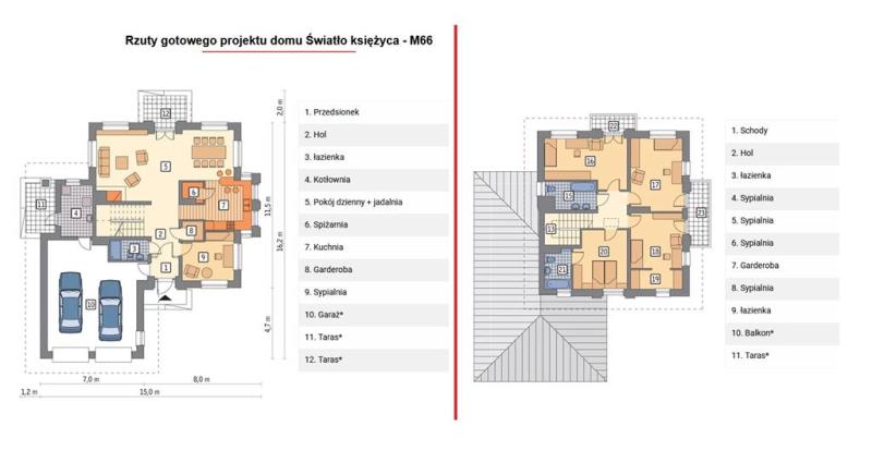 Projekt "M66 Światło Księżyca" to dom piętrowy, co sprawia, że jego powierzchnia jest wyraźnie podzielona na strefy: dzienną i nocną. Dzienną tworzy między innymi salon z aneksem kuchennym. W projekcie znalazła się jedna komfortowa łazienka na parterze oraz dodatkowa na piętrze. Projekt został wykonany w technologii murowanej, dzięki czemu podczas upałów dom utrzymuje przyjemny chłód.