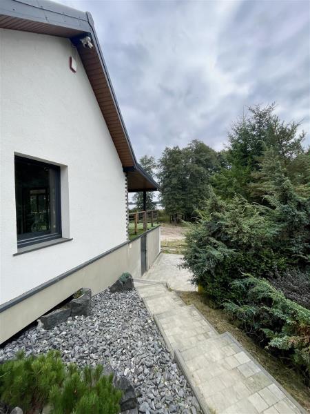Dom o pow. 86m2, położony jest w spokojnej i malowniczej okolicy, z pięknym widokiem na jezioro i otaczającą przyrodę - w części nieruchomość położona na obszarze Natura 2000.
