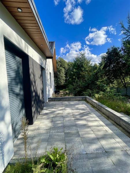 Standard: budynek wybudowany z Suporexu, częściowo z drewna. Ocieplenie styropian 25cm, dach: blacho-dachówka. Ogrzewanie indukcyjne, maty elektryczne firmy Dream Heat. Ciepła woda z datownika ciepłej wody (500l). Okna PCV trzyszybowe z roletami zewnętrznymi. Instalacja alarmowa oraz monitoring - kamery (Hikvision) na posesji.