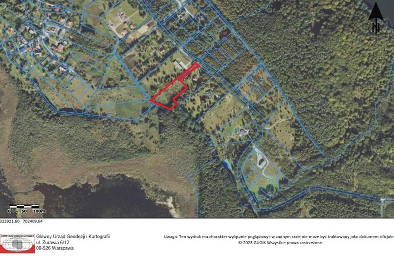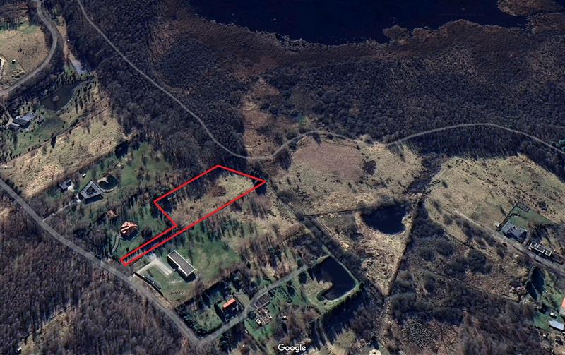 Działka położona na wzniesieniu, teren lekko opadający w stronę jeziora - 250 m