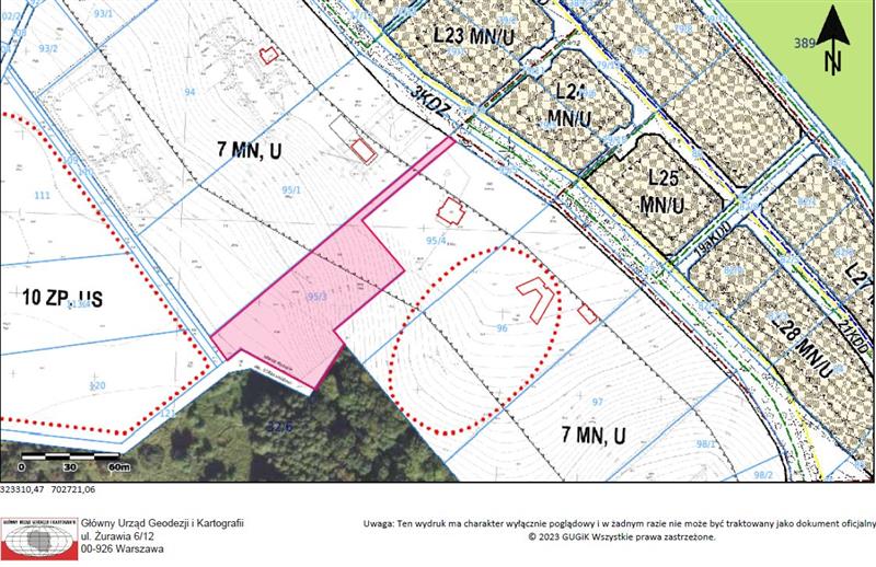 W MPZP działka leży w obszarze oznaczonym symbolem 7 MN,U - budownictwo mieszkaniowe jednorodzinne z dopuszczeniem usług.