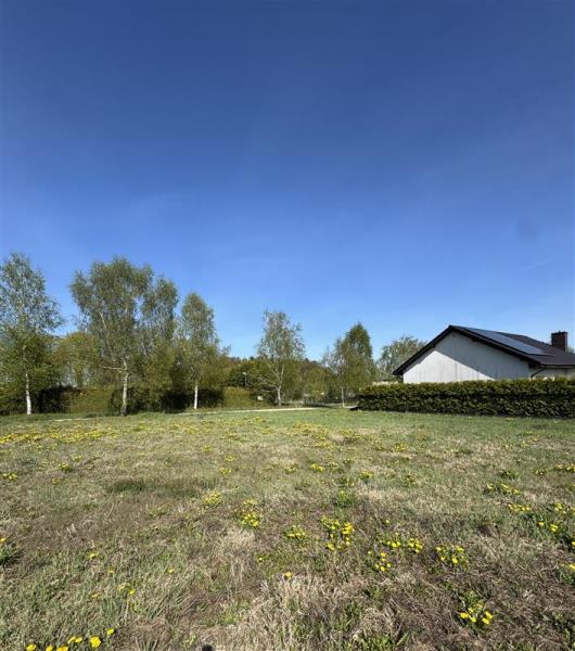 Działka o powierzchni 1.000m2 w kształcie prostokąta. Teren suchy, porośnięty trawą.
