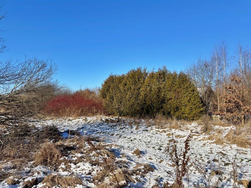 Działka ma kształt zbliżony do prostokąta, o wymiarach ok. 42 × 22 m, teren idealny pod zabudowę, płaski, porośnięty trawą i samosiejkami.