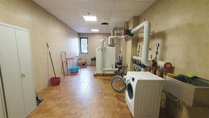 W poszczególnych pomieszczeniach budynku obejmujących salę obsługi bezpośredniej, biuro i pomieszczenia socjalne - ogrzewanie podłogowe; w pozostałych grzejniki panelowe.