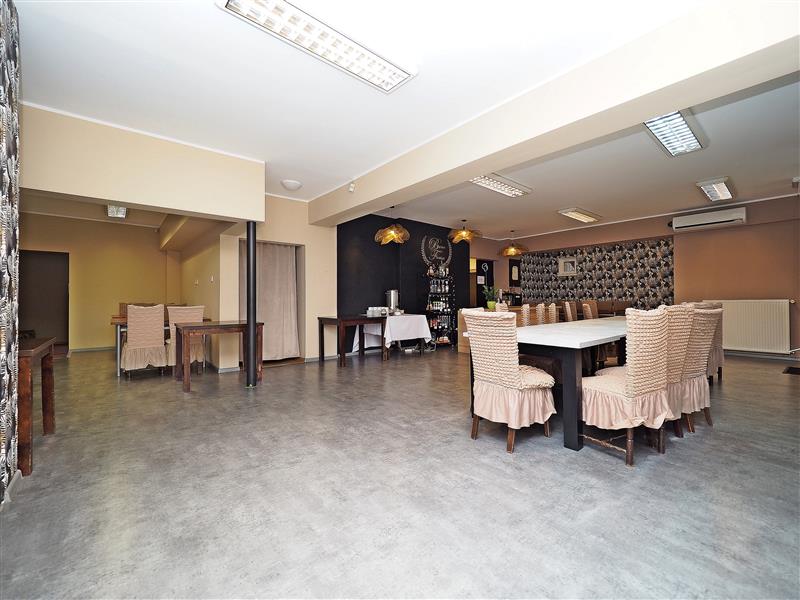 Parter -1 duża sala, 2 wc, pokój zaadaptowany na bawialnię dla dzieci, węzeł sanitarny, kuchnia, przedsionek, pom. biurowe, korytarz.