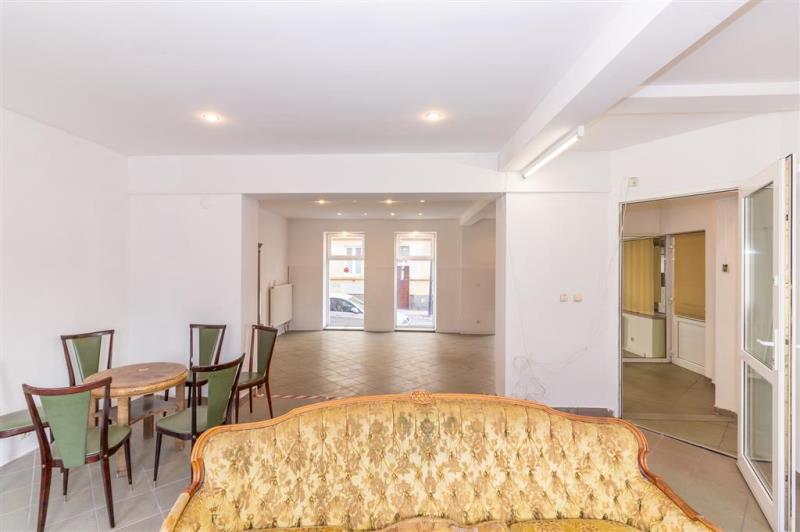 Lokal składa się z sali sprzedaży podzielonej na 2 strefy, przedpokoju i toalety. Do lokalu przynależy piwnica o powierzchni 10.47m2. Łączna powierzchnia lokalu wraz z powierzchnią pomieszczeń przynależnych to 82,14m2.