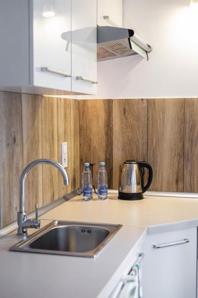 W apartamentach woda podgrzewana z podgrzewaczy przepływowych elektrycznych. Do apartamentów osobne wejście z zewnątrz budynku.