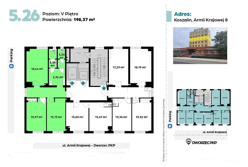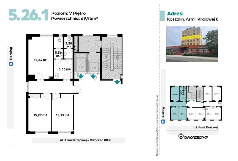 Lokal użytkowy 69,69 m² | 5 piętro | Centrum Koszalina | ul. Armii Krajowej 8