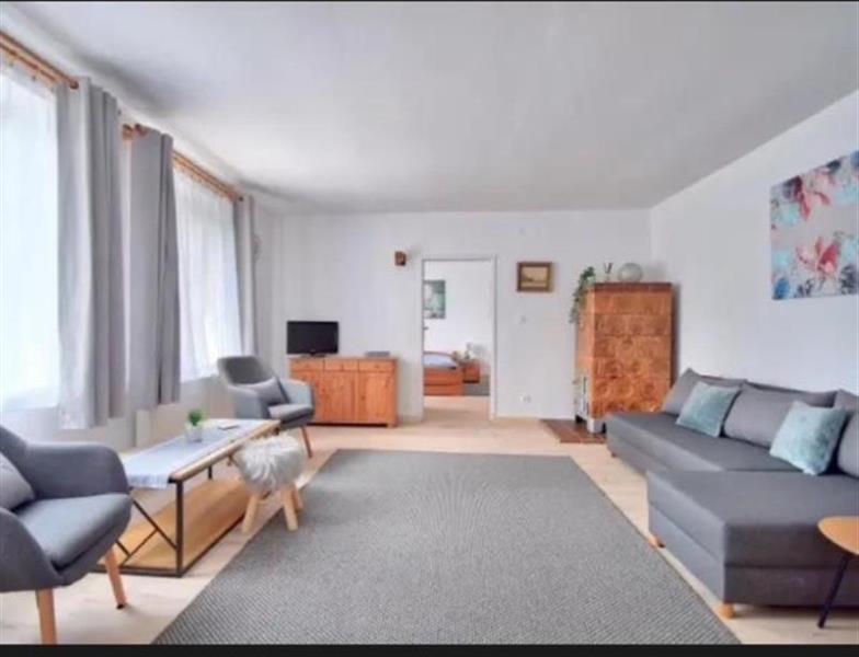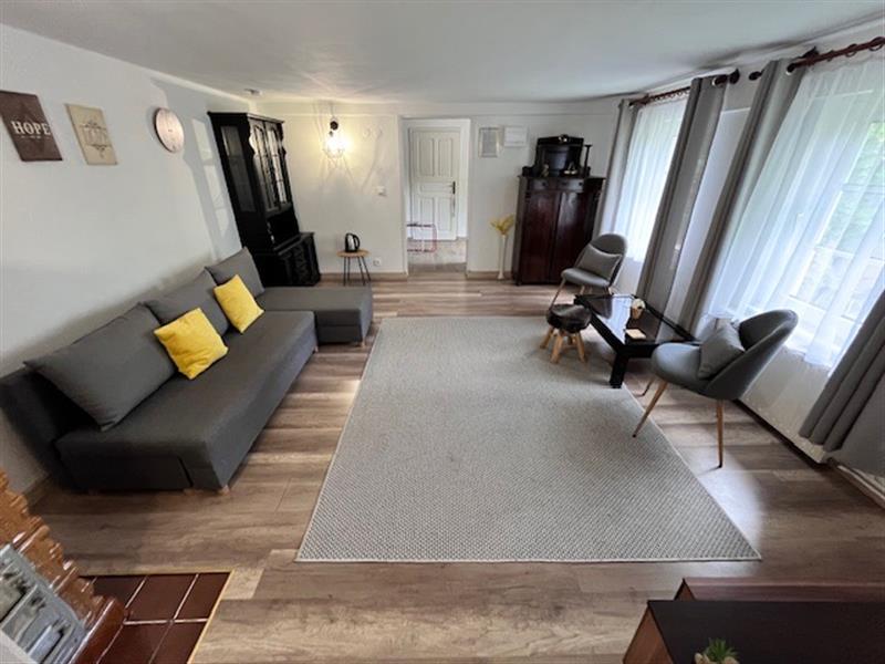 • Parter: 2 komfortowe apartamenty z łazienkami (4-5 osób), kuchnia z kominkiem, pokoje służbowe z łazienką