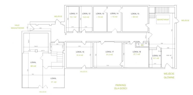 Lokal biurowy nr 7 o powierzchni 31,2 m2, na piętrze z wejście z holu głównego. Lokal posiada 4 okna z wystawą na południe. Biuro gotowe do użytkowania.