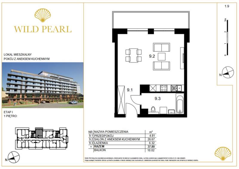 Powierzchnia apartamentu: 37,80m2