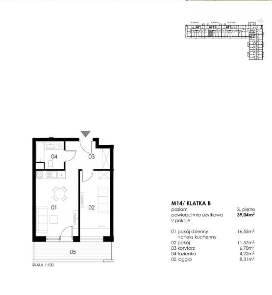 Ta oferta dotyczy mieszkania 2 - pokojowego na trzecim piętrze o powierzchni 39,04m² z loggią i balkonem, podana cena w ogłoszeniu to już cena brutto.
