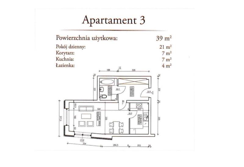 APARTAMENT NR 3 z antresolą (4 piętro) składa się z pokoju dziennego 21 m2, antresoli 16 m2, korytarza 7 m2, osobnej kuchni 7 m2 oraz łazienki 4m2.