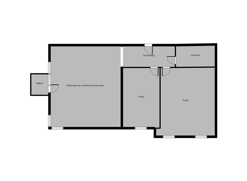 Na metraż mieszkania składa się pokój z aneksem kuchennym, 2 pokoje, łazienka z wc i przedpokój. Z salonu wyjście na balkon.