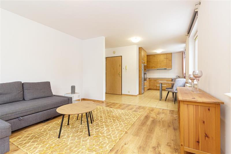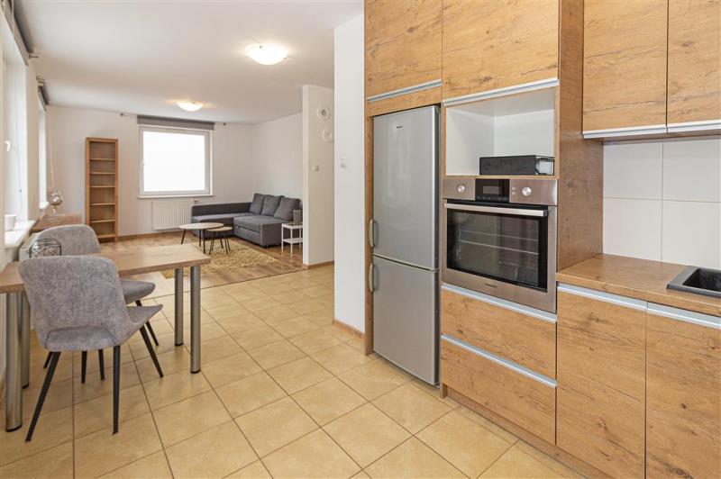 Nieruchomość składa się z ustawnego salonu połączonego z kuchnią, pokoju z szafą w zabudowie, łazienki razem z wc oraz przedpokoju z dodatkową szafą.
