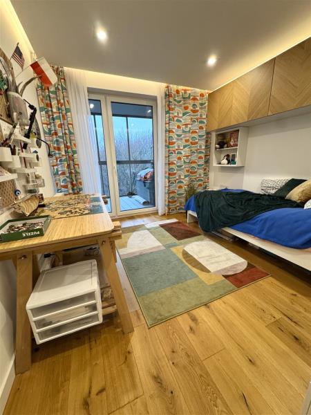 Wszystkie trzy pokoje posiadają okna balkonowe z bezpośrednim widokiem na drzewa. Poranne budzenie się w sypialni z takim widokiem to prawdziwy luksus i gwarancja codziennego spokoju.