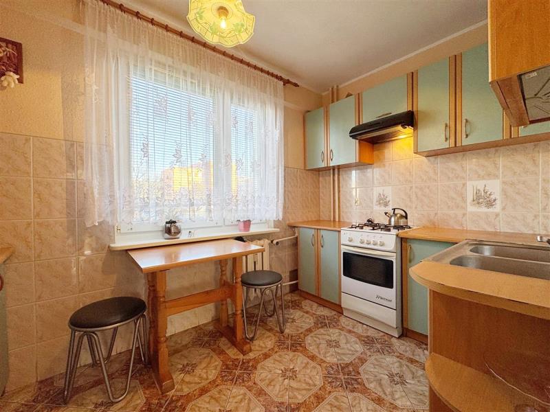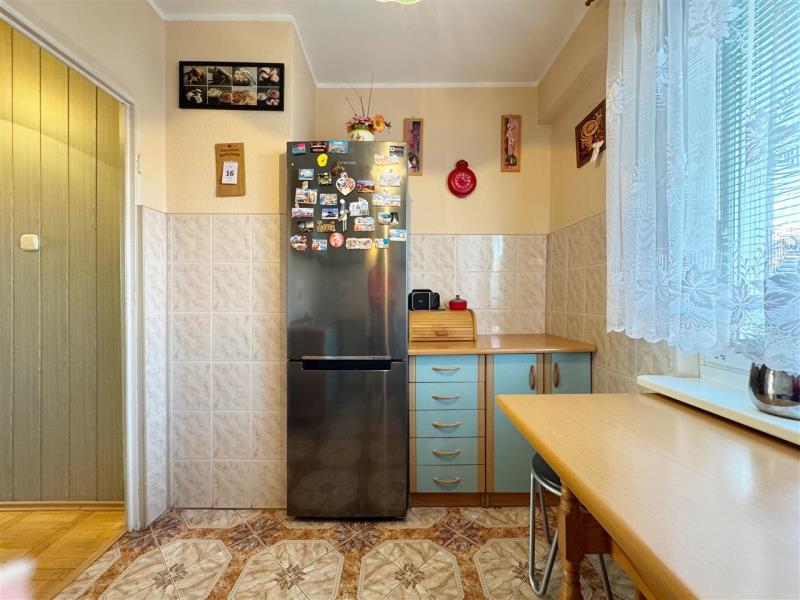 Kuchnia: meble kuchenne pozostają na wyposażeniu mieszkania, glazura i terakota starszego tupu.