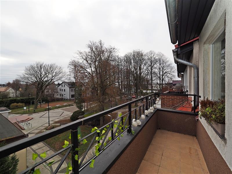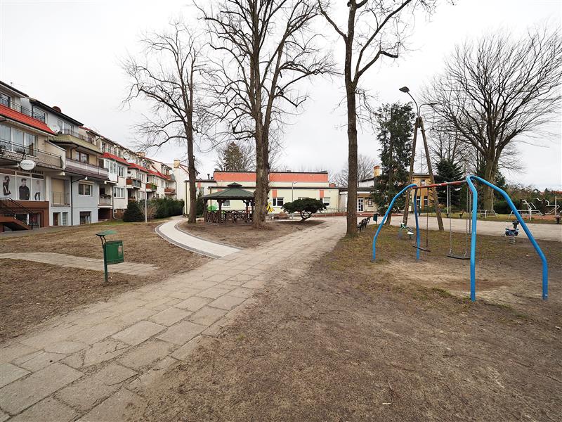 Tuż za budynkiem duży parking, ładny plac zabaw dla dzieci i dużo zieleni.