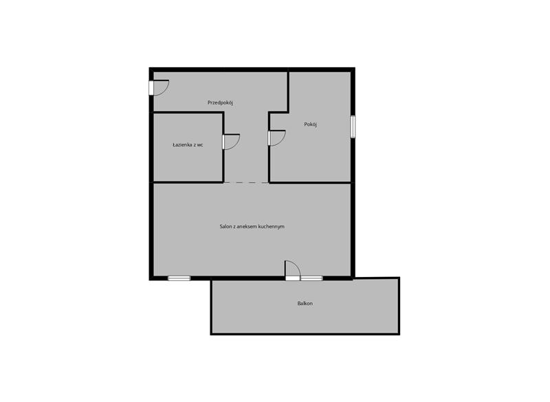 Mieszkanie składa się z salonu z aneksem kuchennym (20,17 m2), pokoju (9,93m2), łazienki (4,79 m2) i korytarza (8,31 m2) z szafą w zabudowie.