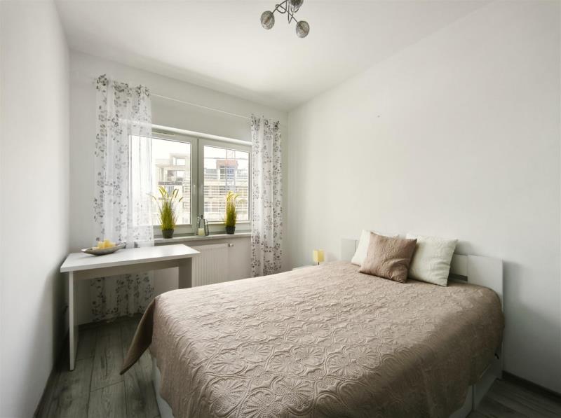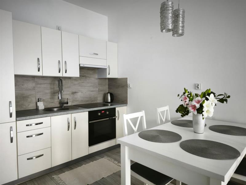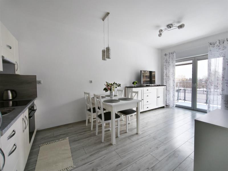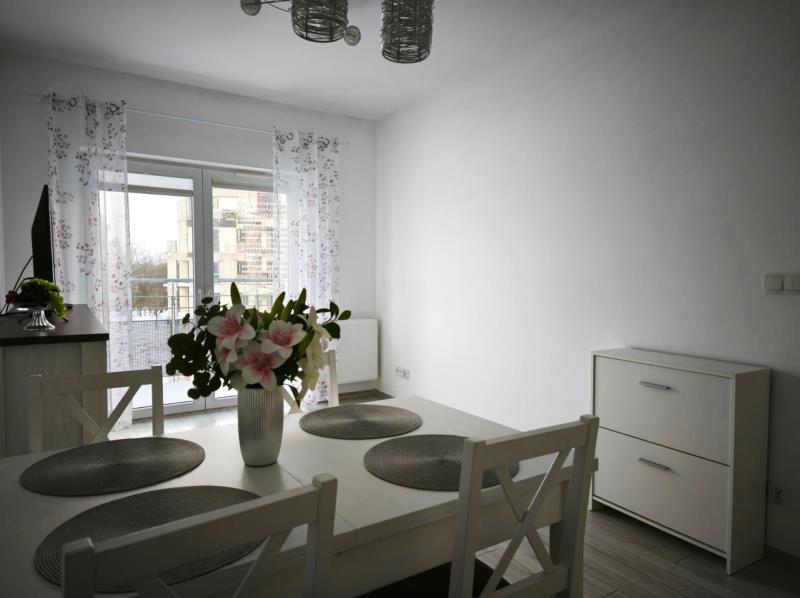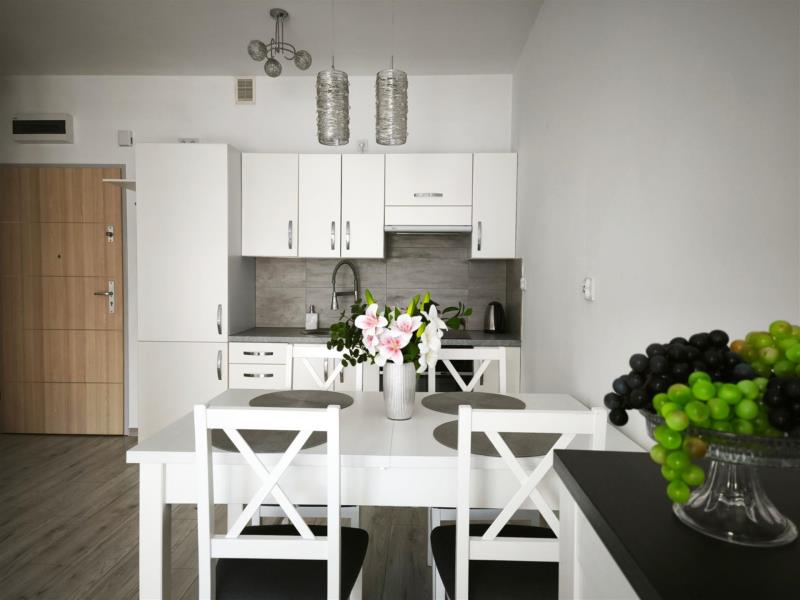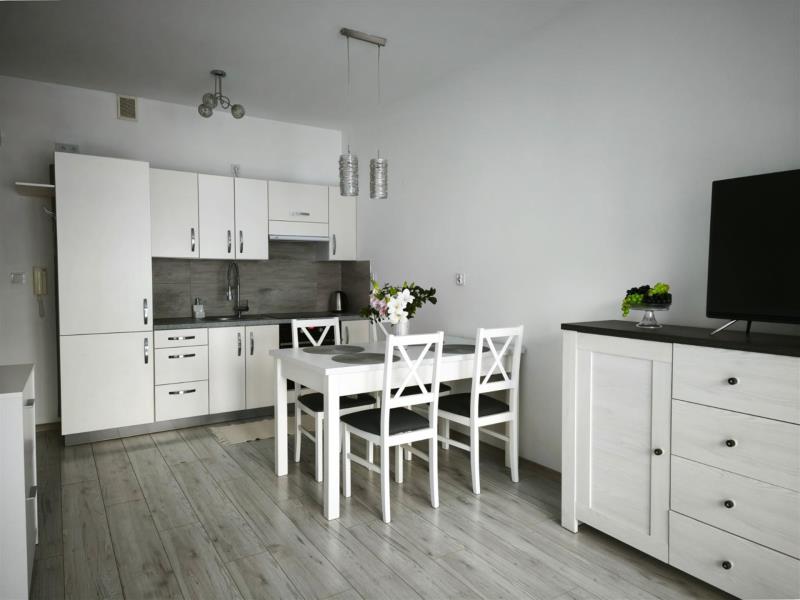 Apartament jasny, zadbany, w bardzo dobry standardzie. Gotowy do wprowadzenia. Umeblowany i w pełni wyposażony w sprzęt AGD (lodówka, płyta indukcyjna, piekarnik, okap, pralka).