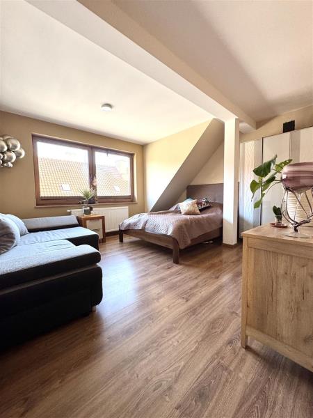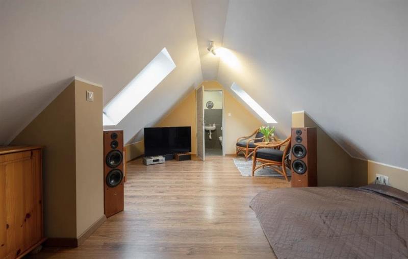 zaadaptowany strych pełniący funkcję czwartego pokoju o pow. 15,7m2