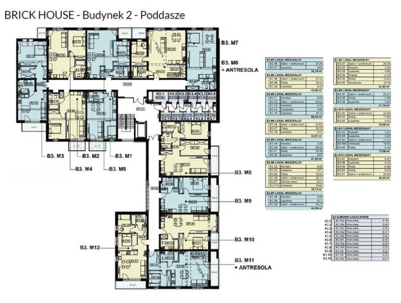Mieszkanie B3.M3 składa się z salonu połączonego z aneksem kuchennym o pow. 21,04 m2, pokoju o pow. 18,74 m2, garderoby o pow. 4,89 oraz łazienki o pow. 5,25 m2. Mieszkanie posiada balkon o pow. 5,50 m2.
