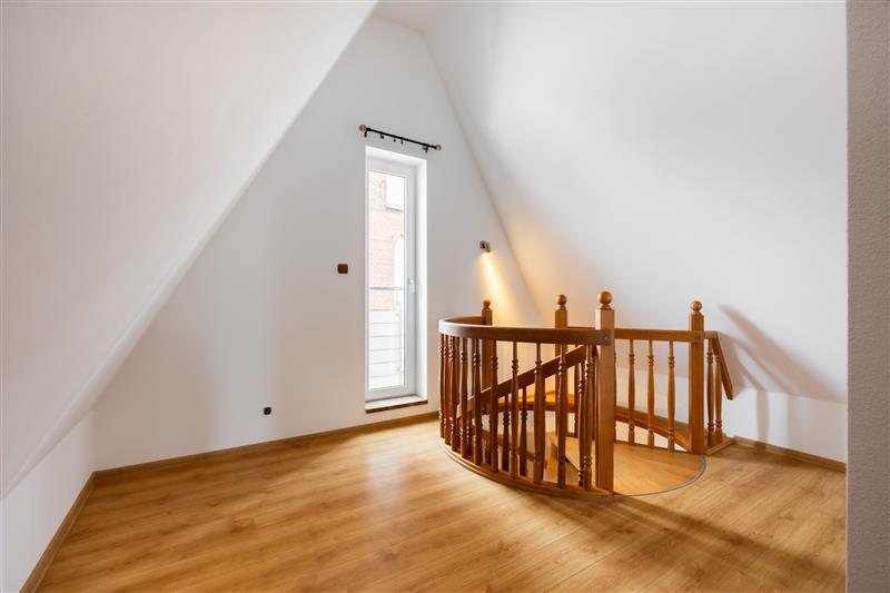 Wejście do klatki schodowej znajduje się od zaplecza budynku, co powoduje naturalne odseparowanie od miejskiego ruchu i zgiełku. Już po przekroczeniu bramy można poczuć wyraźną różnicę – mieszkanie daje poczucie prywatności, jakiego rzadko doświadcza się w ścisłym centrum.