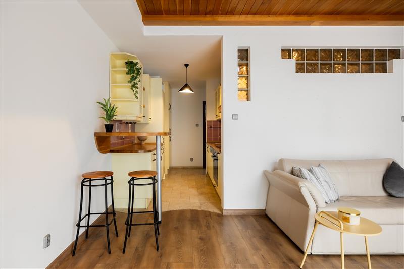 Balkon wychodzi na zamknięte atrium, co sprawia, że mimo lokalizacji w samym centrum miasta mieszkanie pozostaje spokojne i ciche. Nie dociera tu hałas uliczny ani intensywny ruch miejski, dzięki czemu można odpocząć w komfortowych warunkach.
