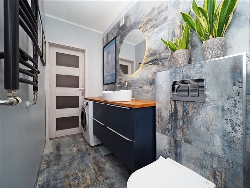 W skład mieszkania wchodzi salon z wyjściem na loggię, sypialnia, duża kuchnia, przedpokój z szafą w zabudowie oraz łazienka z wc. Do mieszkania przynależy piwnica w ramach części wspólnych budynku.