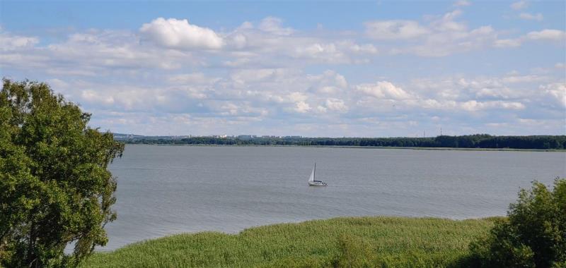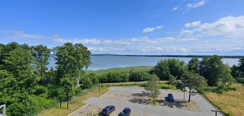 Do apartamentu przynależy duża narożna logia z widokiem na jezioro Jamno.