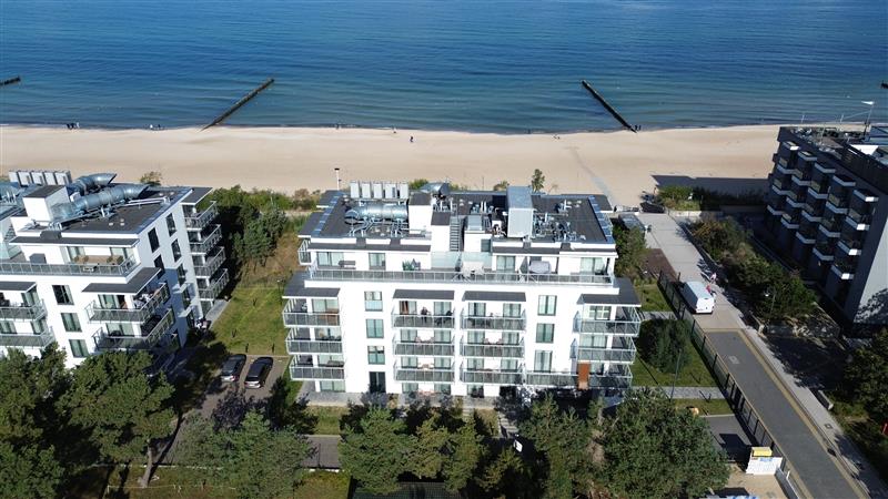 Budynek w którym znajduje się apartament zlokalizowany jest w pierwszej linii zabudowy od morza, oddany do użytku w 2022r., apartament położony od strony południowej ok 20m od plaży.