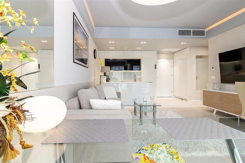 W apartamencie dominuje biel oraz kolory plaży i piasku. Wszystko jest przemyślane tak, aby idealnie się tutaj poczuć i miło spędzić każdą chwilę.
