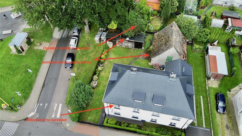 Do mieszkania przynależą 3 pomieszczenia gospodarcze, udział w działce oraz strychu.