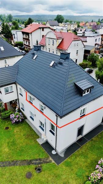 W budynku wymieniono dach, okna połaciowe na dachu, nowa elewacja, na klatce schodowej wymienione okna na PCV, ściany - grysik.