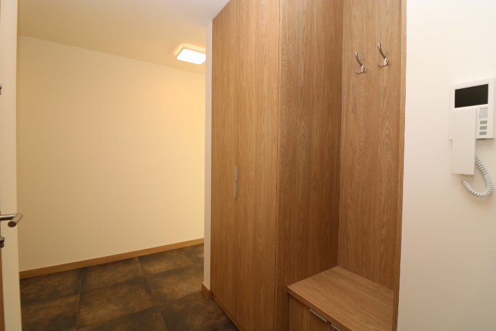 W przedpokoju szafa w zabudowie.